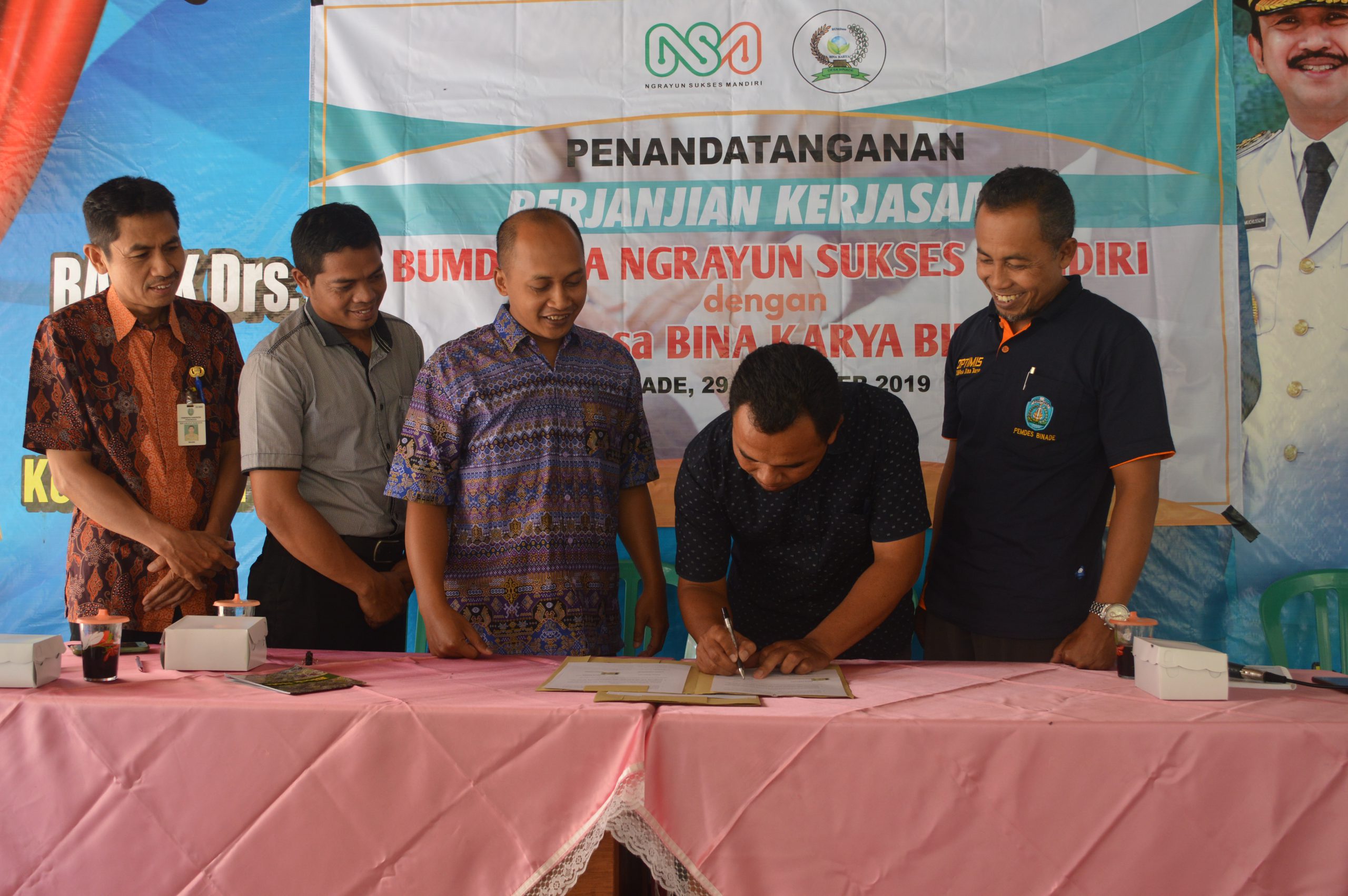 Selain itu Bumdesa Bersama NSM juga melakukan kemitraan dengan Kelompok-kelompok Tani yang ada di wilayah Kecamatan Ngrayun dalam rangka untuk membantu pemasaran hasil kelompok serta membantu peningkatan ekonomi para petani.